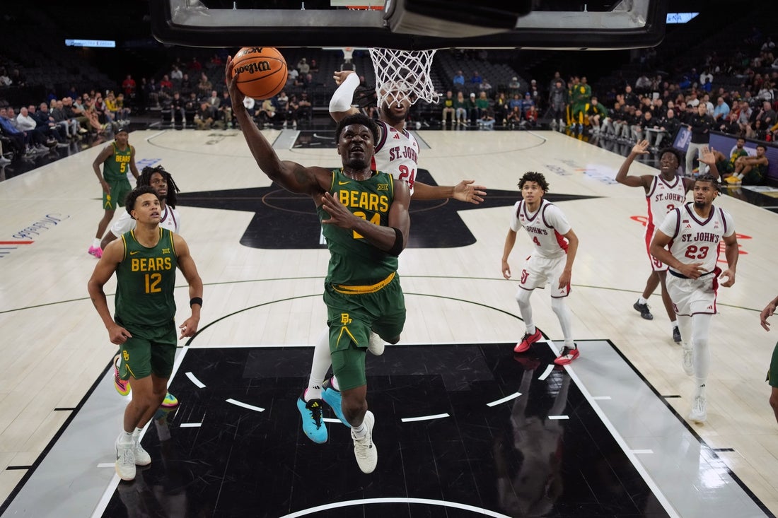 Nov 25, 2025; Las Vegas, Nevada, USA; Baylor Bears guard Tounde Yessoufou (24) shoots the ball against St. John’s Red Storm forward Zuby Ejiofor (24) in a 2025 Players Era Festival group play game at Michelob Ultra Arena. Mandatory Credit: Kirby Lee-Imagn Images All in all, Baylor is feeling good about its recent trip to Las Vegas. The Bears will look to keep those vibes going when they host Sacramento State on Tuesday night in Waco, Texas.