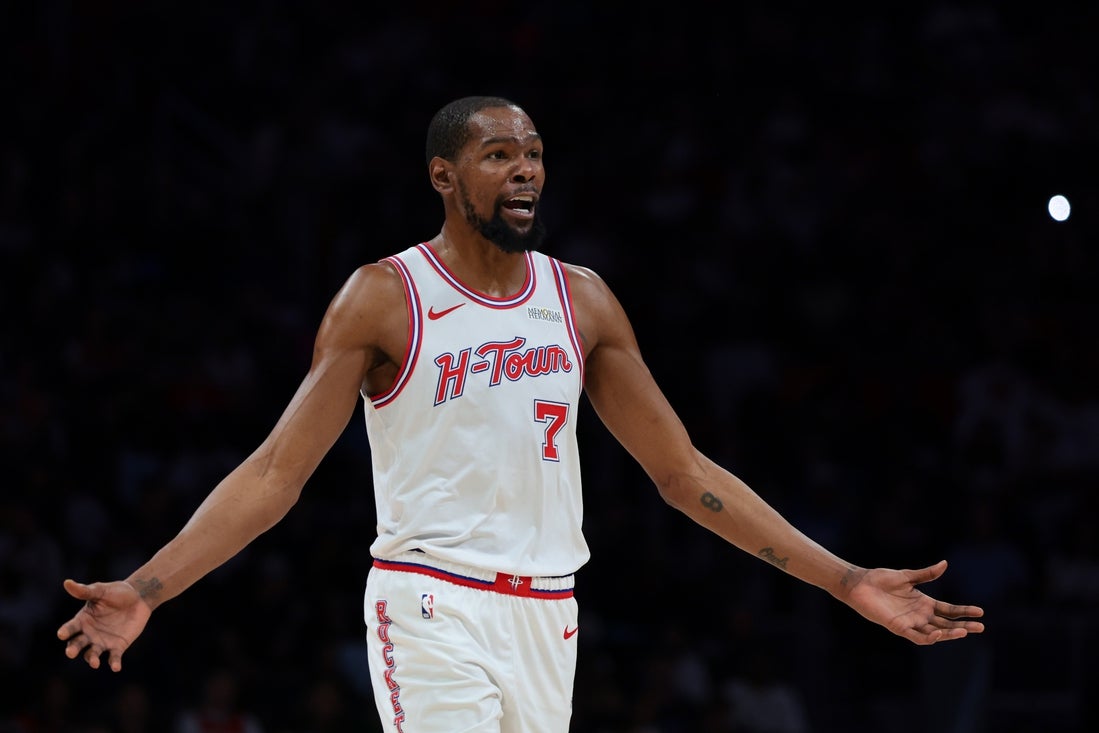 Houston, third in the Western Conference, is coming off a 115-105 loss at Miami Saturday. In that contest, Durant and Heat star Tyler Herro had a heated conversation in the first quarter near the Heat bench resulting in both players getting technical fouls.
