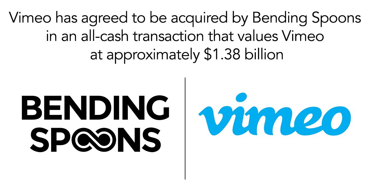 Vimeo has agreed to be acquired by Bending Spoons in an all-cash transaction that values Vimeo at approximately $1.38 billion, equating to $7.85 per share for Vimeo shareholders. The deal is expected to close in the fourth quarter of 2025. At Vimeo’s IPO in 2021, the company’s market cap was approximately $17.8 billion. A year later, Vimeos’ market cap fell under $2 billion and never got back above that number. More to come as more details emerge.